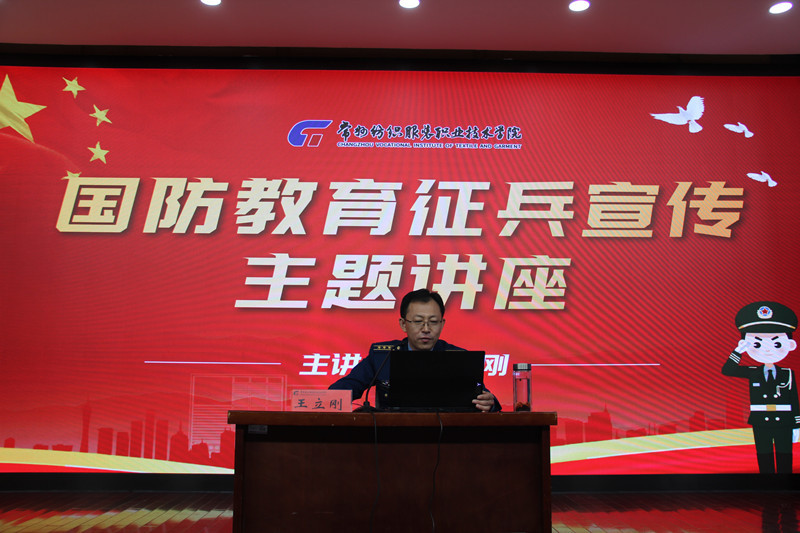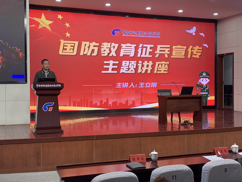 为进一步加强国防教育,增强国防意识,培养同学们的爱国拥军热情,12月22日下午,我校在图文报告厅举行国防教育征兵宣传主题讲座。本次活动特邀新北区人民武装部政委王立刚来校讲座,讲座由校人武部副部长陆亚波主持,各二级学院国防辅导员和300余名同学参加了本次讲座。