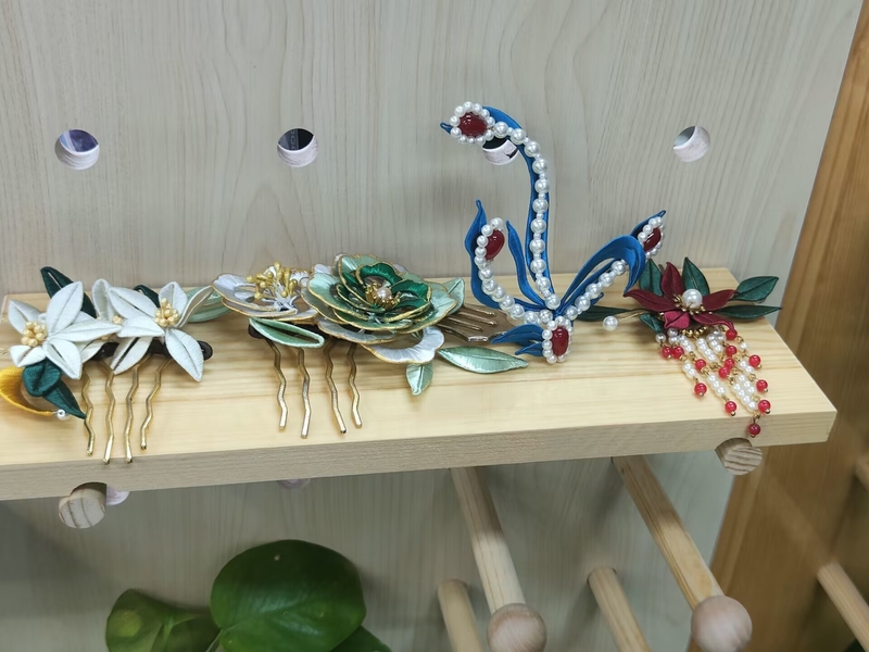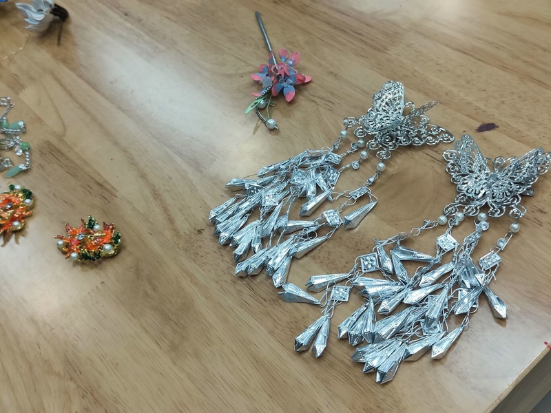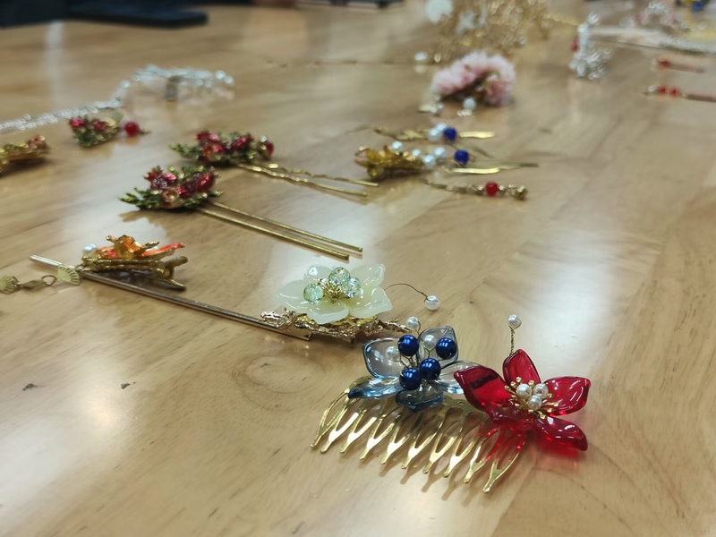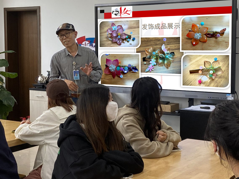 此次活动分为赏析和体验两个过程。在赏析阶段,首先由社长陈凤楠向社团成员展示历届优编坊社员的手工作品,同时带领大家就服饰品工作室陈列的饰品中分析各手工饰品的特点、制作技巧、材料选择、色彩搭配以及工具使用等知识。体验阶段,同学们热情高涨、积极参加,根据活动主题结合工作室现有材料进行手工饰品制作,一同感受手工制作的乐趣。活动中同学们手工制作的绒花头饰、珍珠簪子、手工耳饰等活灵活现、栩栩如生。社团骨干在活动组织与实施过程中,分工明确、积极辅导新社员完成手工体验。