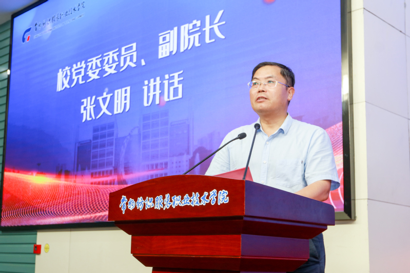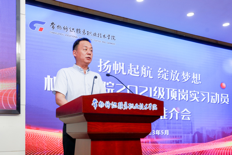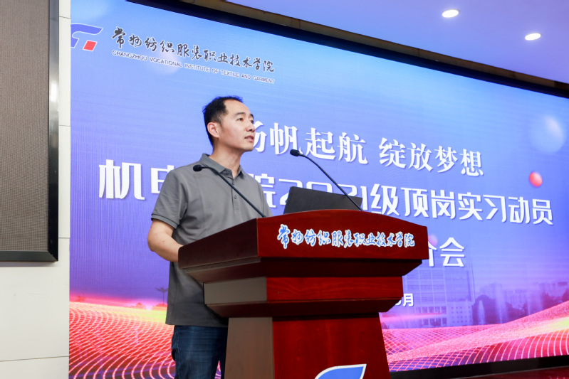 最后,张文明作重要讲话,他指出顶岗实习是人才培养的重要组成部分,是深化课堂教学的重要环节,在培养学生实践能力、创新精神,树立事业心、责任感等方面有着重要作用。同时,顶岗实习能让同学们更好地了解行业产业,为今后自身更好的发展打下坚实基础。他希望同学们能积极摆正实习心态,严格遵守纪律,熟练掌握专业技能,增强自身就业竞争优势。另外,他殷切叮嘱同学们要时刻注意顶岗实习安全,学会保护自己。