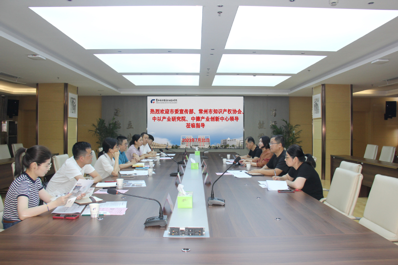 近日,常州市委宣传部版权管理处处长叶亚俊、常州市知识产权协会理事长唐栎铭、秘书长刘勇军、专职秘书左阳、中以产业研究院知识产权部长,市知识产权协会副秘书长杨小丹、中德产业创新中心职业教育部负责人赵兴一行六人到我校就知识产权人才培养、培训进行合作洽谈。校党委委员、副院长张文明、科技处处长李爱红、创业学院院长王磊、教务处副处长许晓宇、校企合作处产教科科长严美娴在1646会议室接待了来宾。会议由李爱红主持。