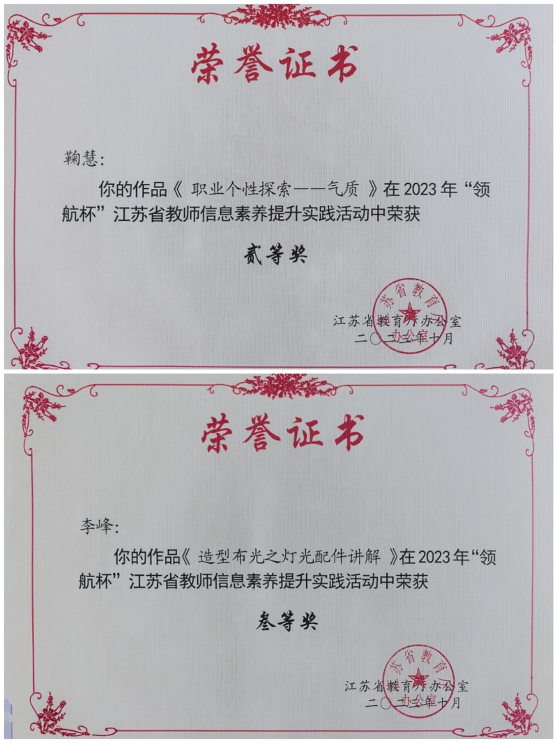 近日,2023年度江苏省教育厅“领航杯”系列比赛结果公布,我校师生在比赛中表现优异,荣获二等奖2项,三等奖4项,创历史最好成绩,其中,教师鞠慧获教师信息素养提升实践活动二等奖,李峰获三等奖;学生许康宇(指导老师:任志敏)获二等奖,魏爽(指导老师:史京军)、常志宇(指导老师:贾彦金)、郦欣怡(指导老师:高全胜)获三等奖。