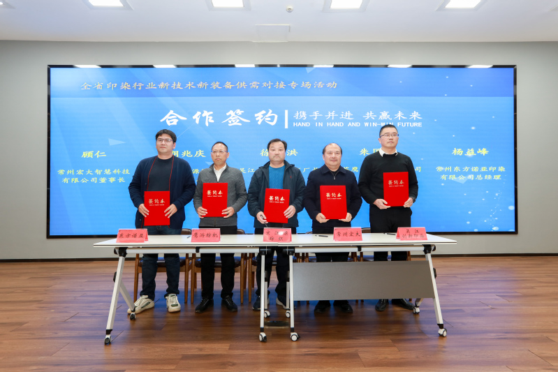 活动最后,企业间针对新技术新装备供给需求精准对接,常州宏大智慧科技有限公司与常州京江源纺织有限公司;常州宏大智慧科技有限公司与吴江创新印染厂;江苏鹰游纺机有限公司与常州东方诺亚印染有限公司成功签署了合作意向书。