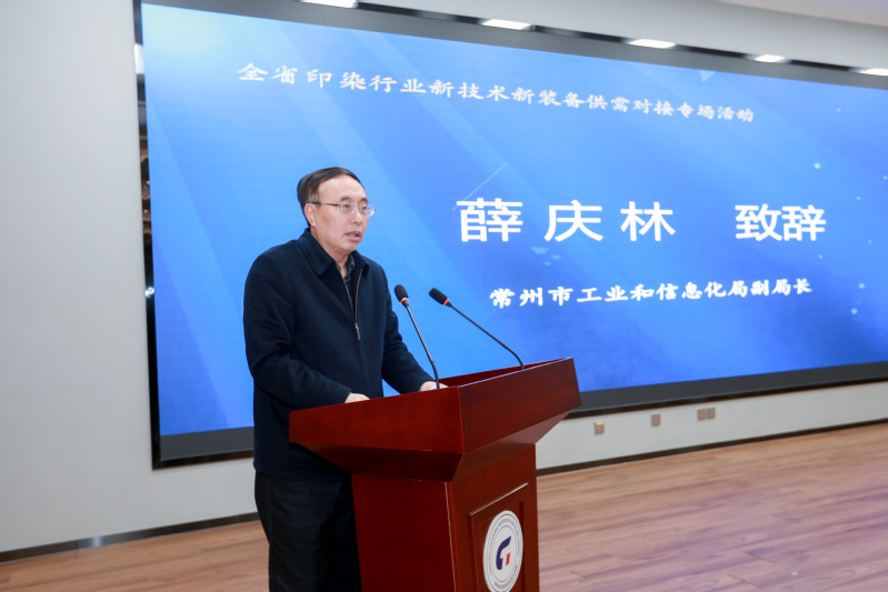活动首先由常州市工信局副局长薛庆林致辞,薛局长表示感谢省工信厅的信任,感谢常州纺院积极筹备承办会议,感谢省纺织工业协会、各市工信局、各市纺织工业协会及与会企业的支持。他表示印染作为纺织品加工的关键工序,关系着纺织终端产品的品质、附加值和市场竞争力。绿色经济发展理念需充分落实在企业的可持续发展战略部署中。低碳经济理念,不仅指达到低排放标准,还意味着建立低污染处理体制。