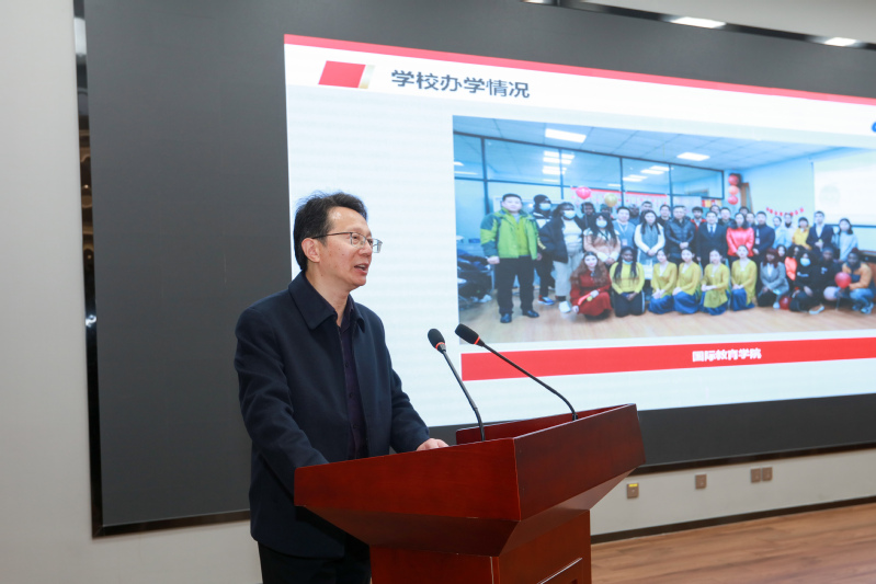 洪霄介绍了我校发展历史,并指出学校正处于支撑中国式现代化的重要战略机遇期、江苏高校重点打造“五个地”推进高水平高职院校建设的黄金期、常州国家级产教融合试点城市建设之际。我校具备完整的纺织品生产加工专业链,将坚持面向世界科技前沿、面向经济主战场、面向国家重大需求、面向人民生命健康,为“强富美高”新江苏现代化建设新篇章作出常纺担当,贡献常纺力量。