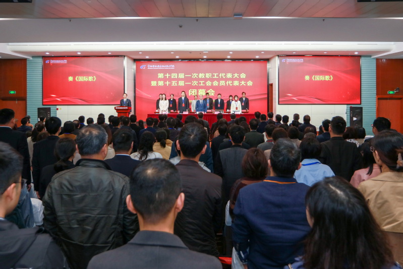在庄重的《国际歌》乐曲中,我校第十四届一次教职工代表大会暨第十五届一次工会会员代表大会圆满完成各项议程,胜利闭幕。