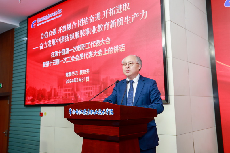 最后,党委书记吴访升致闭幕词。他指出本次会议是深入学习贯彻党的二十大精神、全面落实学校第三次党代会精神的一次重要会议,会议聚焦落实立德树人根本任务,立足新发展阶段,贯彻新发展理念,牢牢把握新时期高等职业教育发展的新趋势、新要求,统一思想、明确新目标,彰显了常纺人为发展中国纺织服装职业教育新质生产力的信心和决心。他代表学校党委和大会主席团,向大会的圆满成功表示热烈的祝贺!向为学校改革发展辛勤付出、无私奉献的全体师生员工,表示衷心感谢!他表示作为学校各领域的代表,在各自岗位上展现出了良好的职业道德和高尚的情怀,是推动各项事业开拓创新的重要引擎,要充分发挥连接学校战略决策与具体执行的关键纽带作用,起到先锋模范带头作用。他结合学校高质量发展和2024年工作奋斗目标与任务提出四点要求:一要自信自强,坚定特色发展自信心;二要开放融合,构建创新发展生态圈;三要团结奋进,凝聚改革创新战斗力;四要开拓进取,激发自我革命内驱力。最后,吴访升强调,2024年是新中国成立75周年,是实现“十四五”规划进入了关键的冲刺期、决胜期,关键之年要有关键之为。在全力推进现代职业教育体系建设与改革创新的关键期,全校教职员工要以挺膺担当、奋发有为的姿态,再开新局面,再上新台阶,紧跟国家职业教育“双高”建设步伐,为把学校建设成为“特色鲜明 走在前列”的中国纺织服装高职强校而努力奋斗。