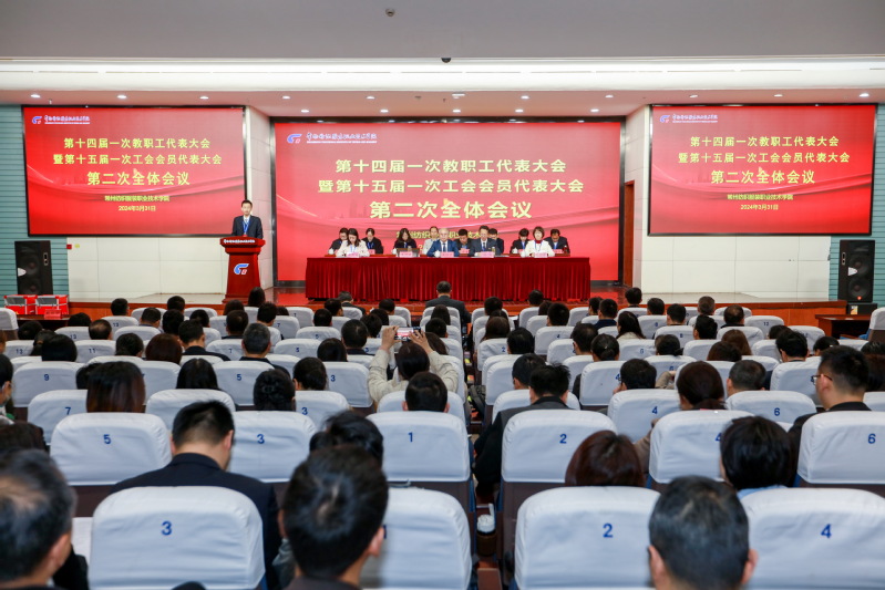 3月31日上午8:30,我校第十四届一次教职工代表大会暨第十五届一次工会会员代表大会(以下简称“两代会”)在图文报告厅举行第二次全体会议。全体正式代表出席会议,党委副书记王顺明主持大会。