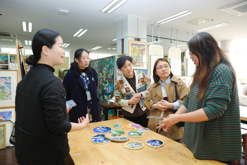 会后,杨丽萍一行参观文化传承与创新中心工作室,对我校优美的校园环境及特色鲜明的校园文化给予了高度评价,并希望两校后续在专业建设、课程建设等方面进一步加强交流与合作。
