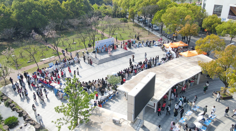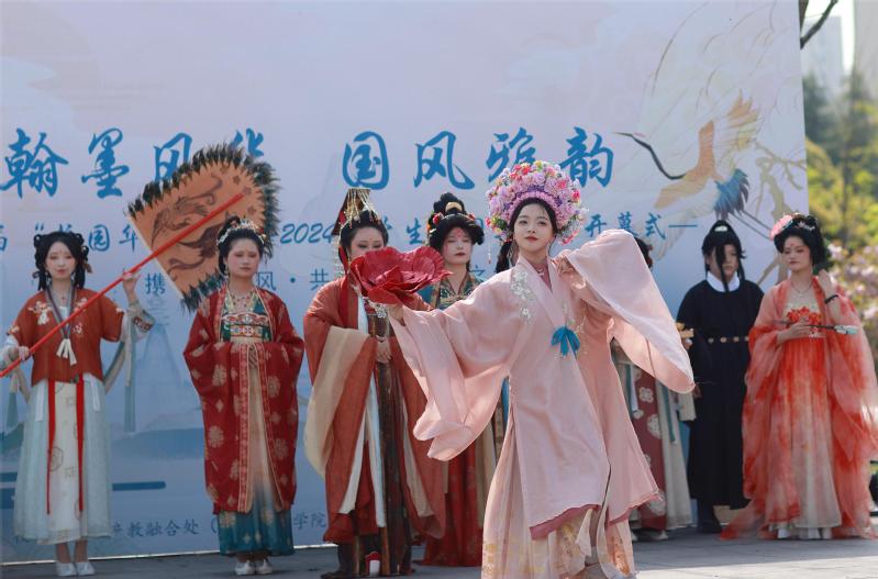 着华服,习汉礼,在农历三月初三中华民族始祖黄帝诞辰日来临之际,4月10日下午,我校在创美广场举办了“裳影游梦·社雅绘园”——第六届“校园华服日”暨2024社团巡礼月开幕式。师生们着华服逛雅集、体验传统技艺、尝非遗美食。活动由校团委、校学生会、产教融合处(创新创业学院)、后勤保障部主办,各学生社团承办,学校党委委员、副校长张震宇,团委书记朱鹏,41个文化类学生社团和1000余名师生共同参加了活动。