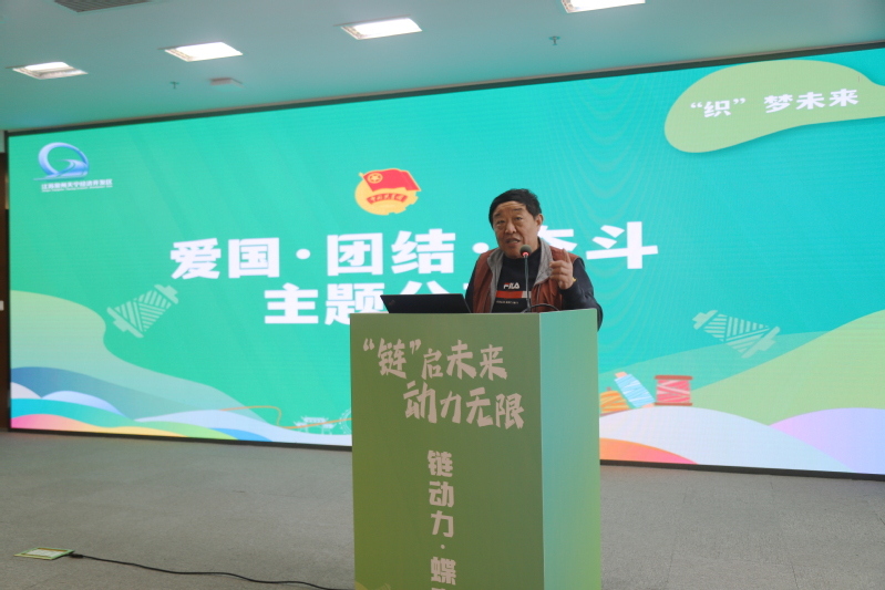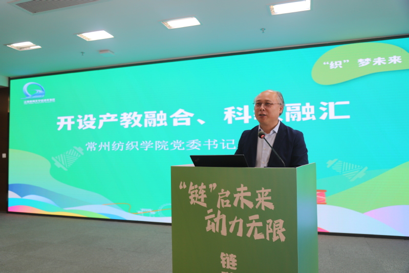会上,裕源灵泰面料科技有限公司、东方伊思达染织有限公司、江苏华崛智能科技有限公司、江苏常环环境科技有限公司等企业代表进行了专题发言;常州市纺织工程学会会长张国成代表行业作了专题发言;我校党委书记吴访升围绕产教融合、科教融合作了主旨发言。他从“新、深、高”三个方面进行了阐述:一是政校企行通过链盟党建平台,组织联建、阵地联用、人才联育、发展联动,推动产业链与组织链、人才链、创新链、服务链深度融合,切实把党的政治优势、组织优势转化为企业竞争优势、产业发展胜势。二是产教融合。学校与链盟企业联合制定人才培养方案、标准,合作开发教材课程,提高学校人才培养适应性,支撑配合企业转型升级;三是科教融汇。政校企行共同推进科技创新与产业创新深度对接,通过组建创新中心、战略发展研究院等,把科技成果转化成产品、商品,不断形成新质生产力。