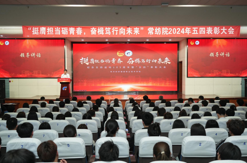 张震宇代表学校党政向全校广大团员青年和共青团干部致以亲切的问候,向受到表彰的共青团工作、社会实践工作的先进集体和先进个人表示热烈的祝贺。他指出,青春,意味着千万个可能,也同时意味着千万个抉择,常纺青年为建设中国式现代化挺膺担当,应牢记最大的政治,在强国建设中建功立业;应树立最高的理想,在崇高理想中明确方向;应拥抱最美的奋斗,在主动奋斗中创新创造。他鼓励青年师生坚定不移听党话、跟党走,以饱满的激情、昂扬的斗志、飒爽的英姿,奋力谱写社会主义现代化常纺院的绚丽篇章。