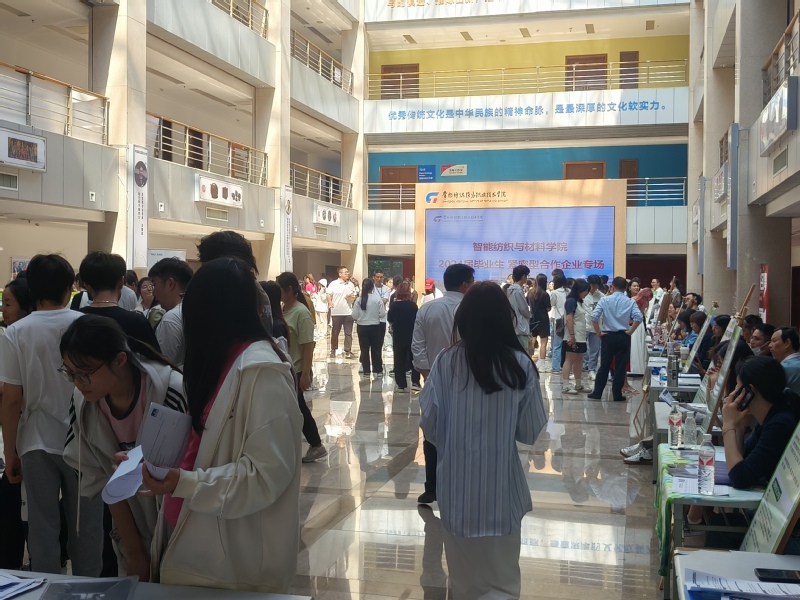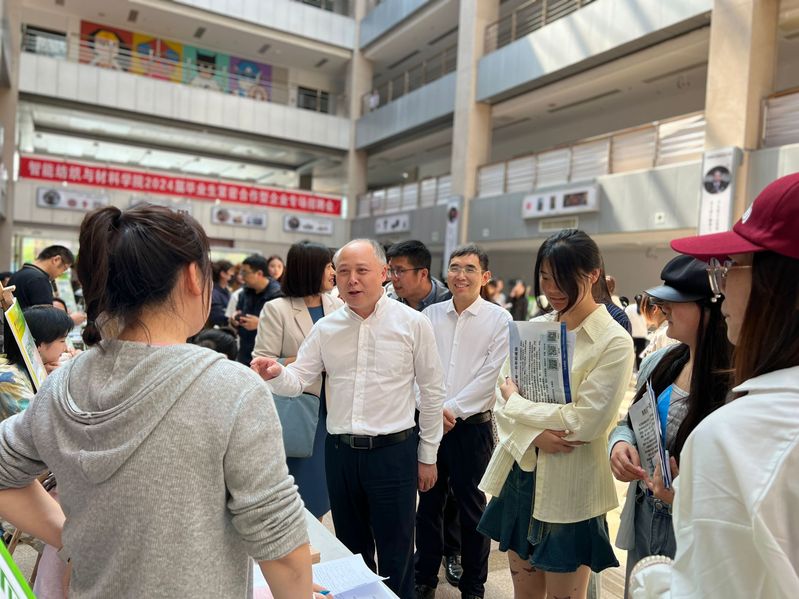 智能纺织与材料学院于5月8日下午在文化传承与创新中心一楼举办2024年紧密合作型企业专场招聘会。校党委书记吴访升、校党委委员、副校长张震宇、招生就业处处长高妍深入招聘会进行指导交流。智能纺织与材料学院全体党政领导及各专业老师到场参会。