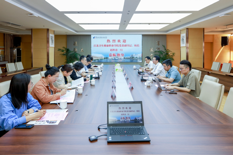 5月14日上午,江苏卫生健康职业学院党委副书记、院长赵胜忠、党院办主任花鸥、教务处处长王莉等一行来我校调研交流。学校在1646会议室召开调研交流会,党委副书记、校长洪霄、发规处处长、质量办主任赵振勇、信息中心主任廖定安、副主任薛鹏飞参加了会议。会议由洪霄主持。