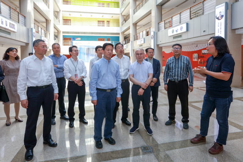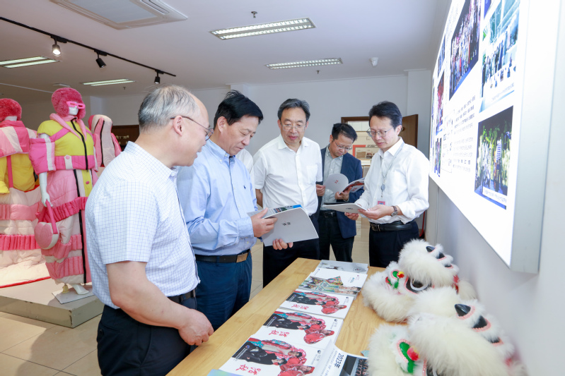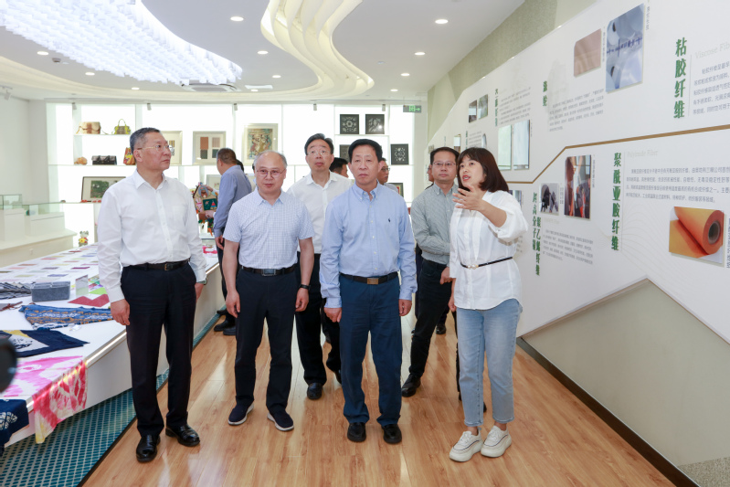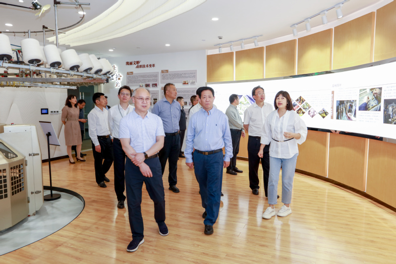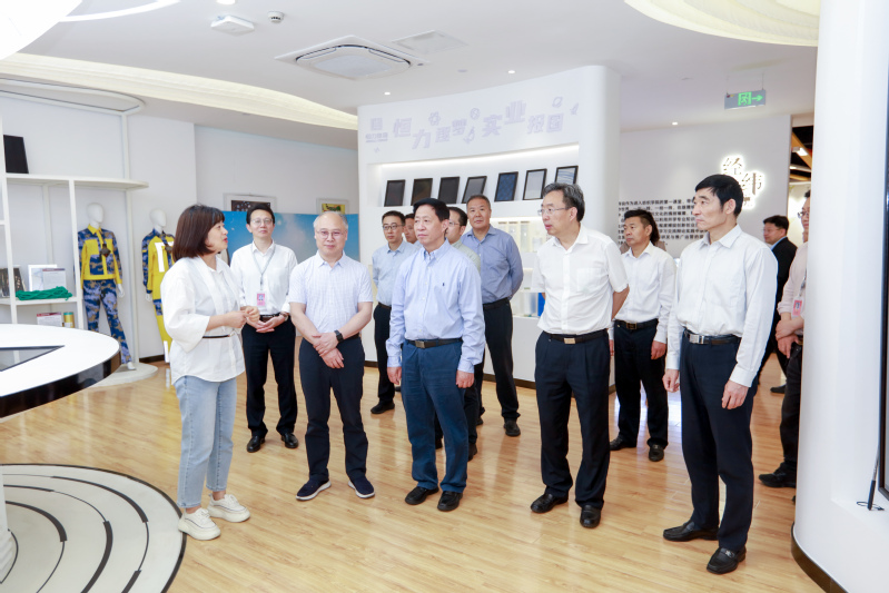 在纺织科技文化馆,胡刚一行了解到我校在服务重大国家战略的纺织领域创新的服务,认真听取了智能纺织与材料学院院长郭雪峰对场馆的讲解。观看了刘传永博士操作的可降解水溶性薄膜实验,对我校老师积极对接产业技术创新、服务产业创新开展技术研发予以高度认可。