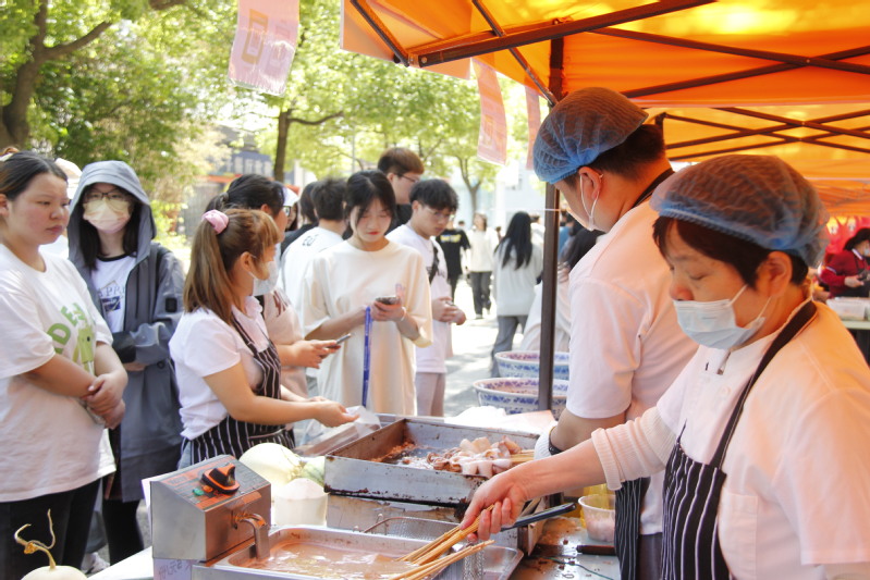 本次校园美食节活动,邀请了诸如“常州大麻糕”“常州萝卜干”“常州梨膏糖”“嘉泽鸭头”等一批常州非遗名菜名点、乡村地方特色美食,共计66家商户单位参与活动,开展了一系列美食文化和营养健康知识的普及活动。参加美食节的同学说:“中华文化源远流长,美食节让我们品尝到了常州乡镇的特色美食,经过这些’匠人’的手我们感受到了中国传统饮食文化的魅力,体会到了常纺美好的校园生活”。