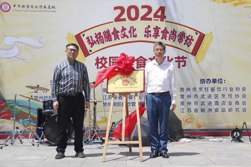 开幕式上,张文明在致辞中指出通过举办美食文化节,能更好地满足师生对餐饮服务个性化、多元化、体验式的需求;加深师生对学校餐饮工作的认知以及推动餐饮服务工作的创新;同时也是餐饮行业同仁们交流学习和友好往来的平台,拓宽餐饮各行业间相互学习和借鉴的渠道。随后,全国职业院校美育联盟秘书长顾明智,中华饮食文化传承基地负责人、中国烹饪大师张志青共同为中华饮食文化传承基地揭牌;夏斌为中华饮食文化传承基地专家顾问受聘人员颁发聘书。本次校园美食文化节正值常州纺院66周年校庆期间,与会代表和学生共享了节日的美好。