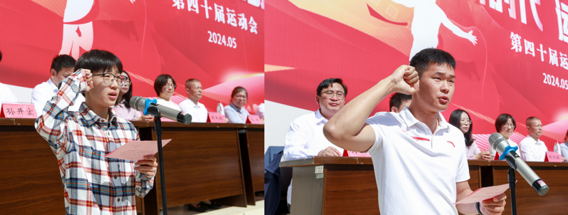 运动员代表浅海涵宣誓,表示将遵守运动会比赛规则和赛场纪律,服从裁判,尊重对手,团结协作,公平竞争,顽强拼搏,赛出风格,赛出水平;裁判员代表马龙老师宣誓,表示将忠诚履行裁判员职责,秉公裁判。随后,身着绚丽服装,手持鲜艳花球的学生啦啦操队不断变换队形,脚踏动感节拍,焕发出激扬的青春风采,拉开了团体操表演的帷幕,将开幕式表演氛围推向高潮。