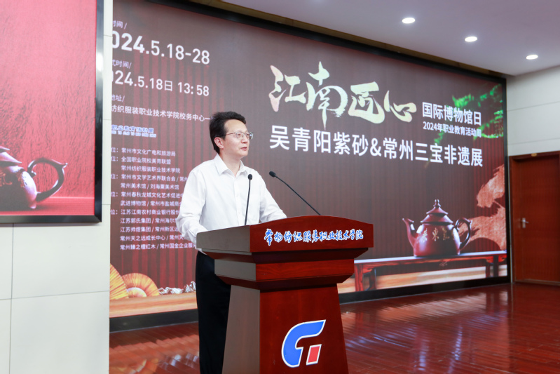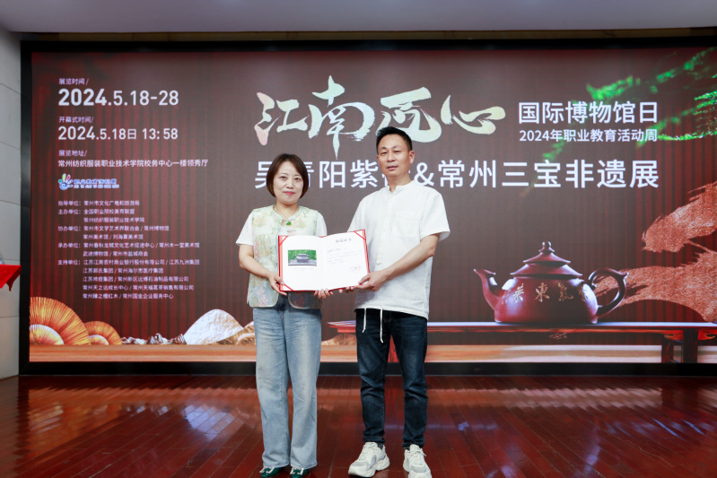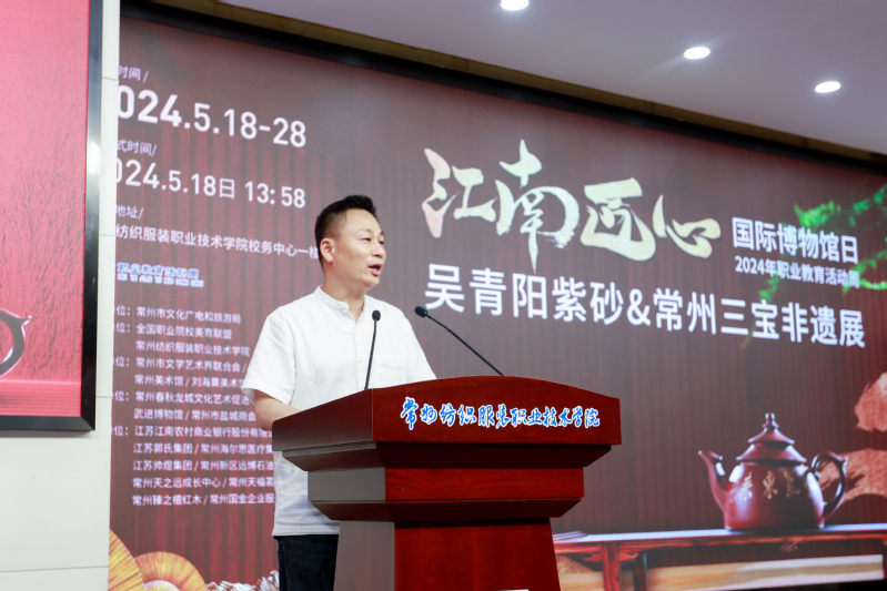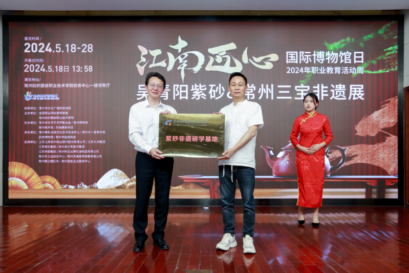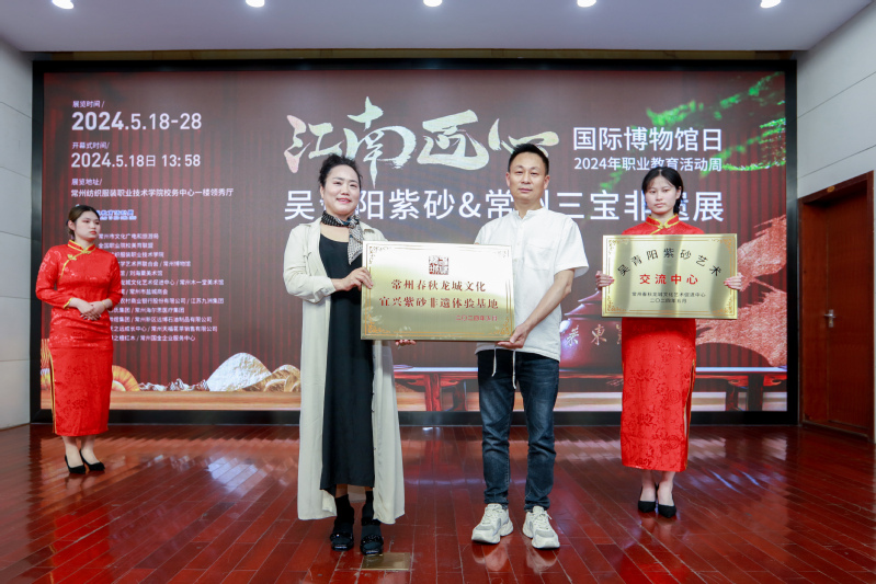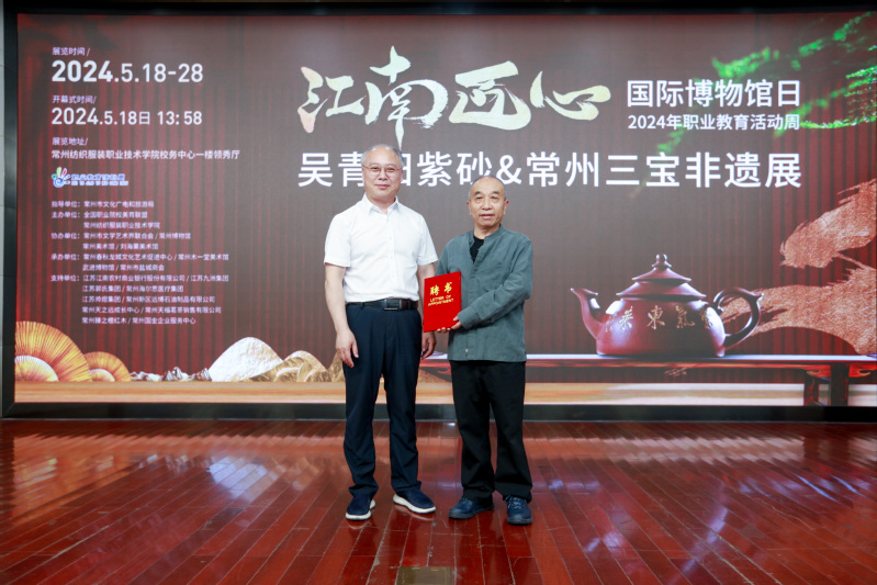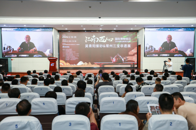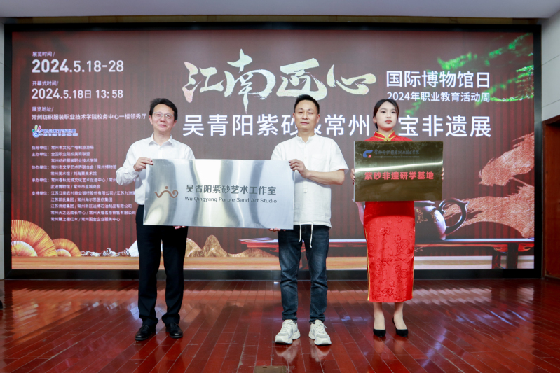 2024年5月18日下午,为庆祝第48个国际博物馆日和2024年职业教育活动周,“江南匠心——吴青阳紫砂和常州三宝非遗展”开幕式在我校报告厅隆重举行。众多领导、嘉宾与艺术大师齐聚一堂,共同见证这一重要时刻。活动有幸邀请到中国紫砂非遗传承人吴青阳老师,他带来精湛的紫砂作品,展现了对工匠精神的传承与发扬。同时,将常州三宝——常州梳篦、乱针绣、留青竹刻等非物质文化遗产与吴青阳老师的作品相结合,呈现出一场视觉与文化的盛宴。