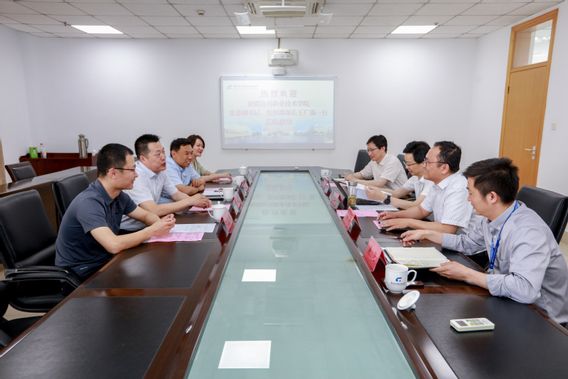 新疆应用职业技术学院是我校对口援疆学校,双方在专业建设规划、人才培养、师资队伍建设、实训基地建设、“三教”改革方面有着深度交流与合作。会上,王顺明代表学校对王广强一行表示热烈欢迎,并介绍了我校近年发展情况,干部队伍建设、人才培养、党纪学习教育、毕业生就业、课堂革命等方面的工作;马昀从共享资源、共建课程、共建“虚拟教研室”等方面交流了双方在课程建设、专业建设、教学大赛、技能大赛、教学资源库建设等领域拟开展的合作;王广强从项目建设、招生规模、安全稳定、意识形态等方面介绍了新疆应用职业技术学院的发展情况,对我校教师王建平援疆期间的支持援助表示了感谢,并希望双方能在师生培训、党建、专业建设等方面有更深入的合作交流。
