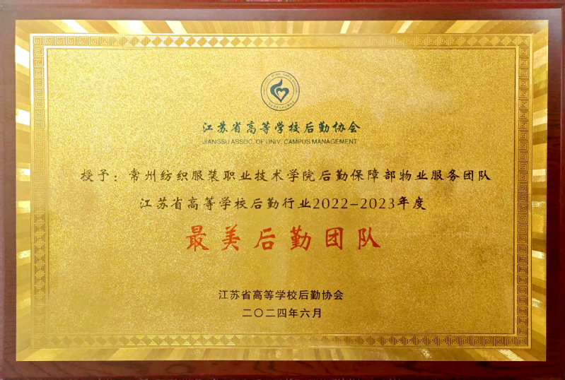6月2日下午,由江苏省高等学校后勤协会举办的“2022-2023年度最美后勤人(团队)”表彰大会暨“融合聚力促发展,匠心筑梦谱新章”后勤职工文艺汇演在苏州大学存菊堂成功举行,省教育厅党组成员、省委教育工委委员、副厅长杨树兵,省高等学校后勤协会会长、东南大学党委常委、副校长黄大卫,省教育厅发展规划处副处长、三级调研员陈忠斌等参加会议,并为获奖团队颁奖。我校后勤保障部物业服务团队荣获江苏省高等学校后勤行业“2022-2023年度最美后勤团队”荣誉称号。
