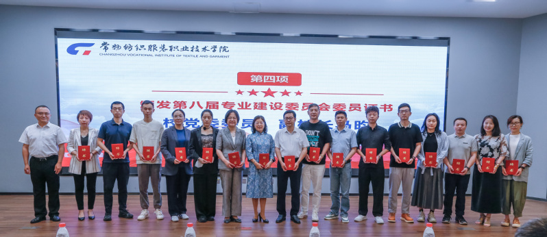 会议第一阶段在领秀展厅举行。首先,张震宇致欢迎辞,他介绍了学校的基本情况及近年来服装与时尚设计学院在专业建设和人才培养方面取得的成效。马昀就我校2024级人才培养方案修订意见进行了解读,他指出,当下新质生产力在纺织服装全产业链得到充分体现,专业人才培养方案决定了一个专业“培养什么人”和“怎样培养人”这一基本问题。本次人才培养方案的修订要聚焦新质生产力,体现“五育”并举,注重标准引领,汇聚多方力量,实施专创融合。会上,张震宇与江苏圣澜服饰创意有限公司董事长王秋芬共同为“常纺-圣澜”校服研创中心揭牌,马昀为第八届专业建设委员会委员颁发了聘书。随后,各专业带头人围绕岗位需求调研、职业能力分析、课程体系设置、三教改革举措等方面进行了人才培养方案编制工作汇报。