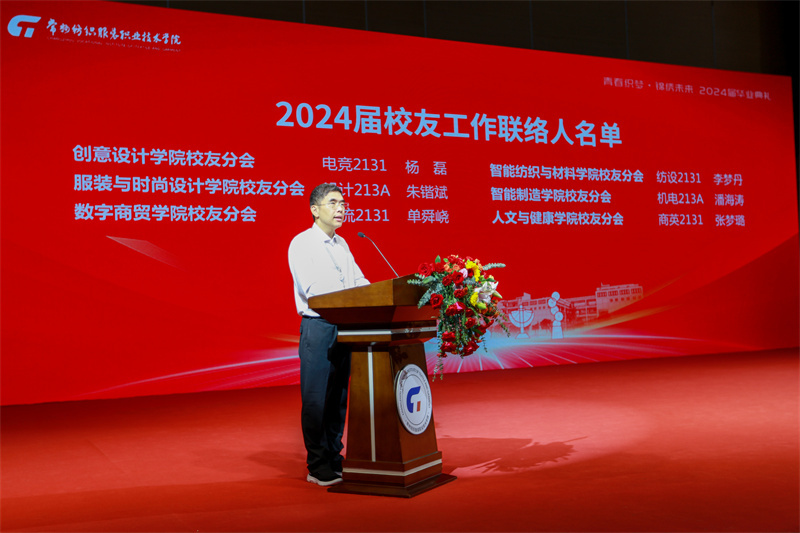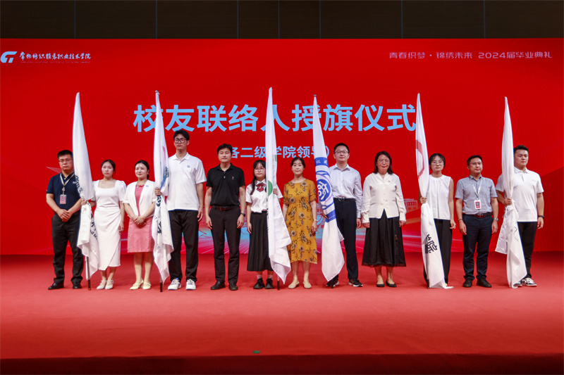 为了加强校友与母校之间的联络沟通,促进学校和校友事业的共同发展,学校在2024届毕业生中选聘了校友工作联络人。张震宇宣读了《关于聘任2024届校友工作联络人的决定》,随后各二级学院领导分别向2024届校友联络人授旗,一面面旗帜承载的是情感的链接,祝福同学们在新的征程上再创佳绩。