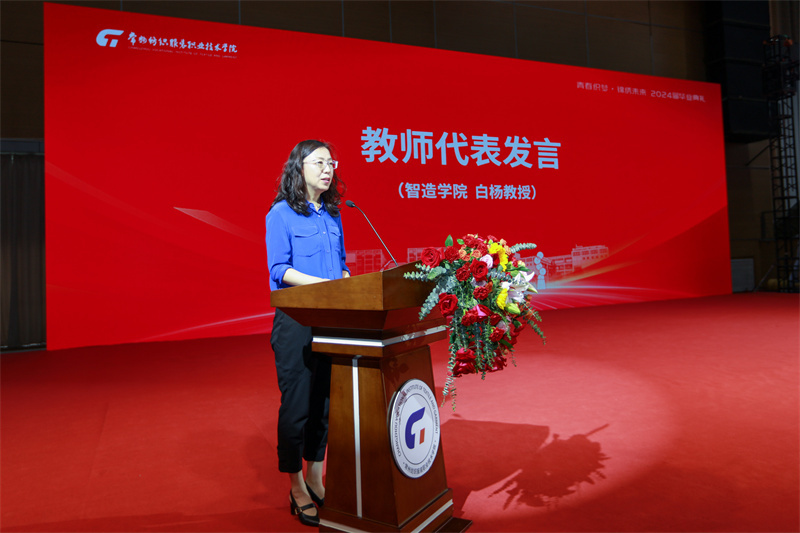 教师代表智造学院白杨教授勉励毕业生们在今后道路中保持学习的热情,注重兼收并蓄,保持独立思考的能力,珍惜同学情谊,积极回馈社会,帮助他人。