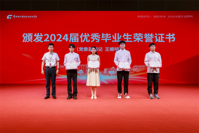 党委委员、副校长马昀宣读2024届优秀毕业生表彰决定。党委副书记王顺明为优秀毕业生代表颁发了荣誉证书。