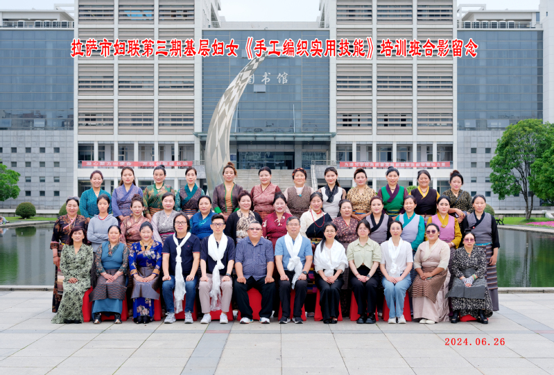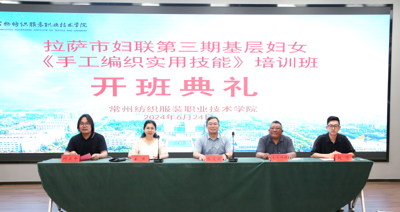 6月24日上午,由来自西藏拉萨曲水县、推龙德庆区、达孜区、墨竹工卡县、尼木县、柳梧新区、当雄县、城关区和经开区的2名领队和30名学员组成的拉萨市妇联基层妇女第三期《手工编织实用技能》培训班开班典礼在领秀展厅隆重举行。拉萨市妇联发展科科长、四级调研员扎西群培、学校党委委员、副院长张文明,继续教育学院、服装学院和创意学院相关负责人,培训教师代表和全体参训学员参加开班典礼。会议由继续教育学院院长姜燕主持。