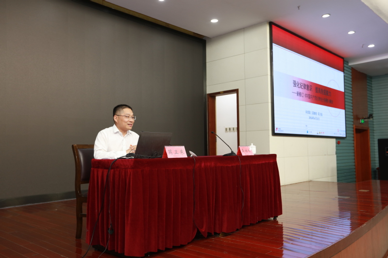 常州市委第三巡察组组长、三级高级监察官芮卫东给大家作了《中国共产党纪律处分条例》学习辅导。芮卫东以“强化纪律意识提高免疫能力”为题,从《纪律处分条例》的修订历程、修订背景、修订看点三个层面,结合多年的工作实践和体会,通过列举众多典型违纪案例,给大家做了一场生动详实的辅导报告。