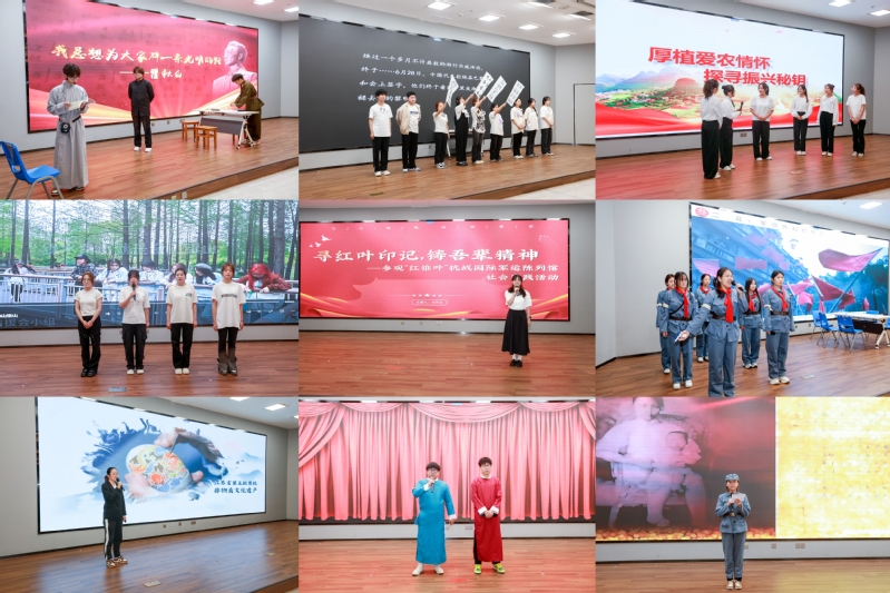 本次实践教学成果展示历经班级选拔、马院初赛,从各班级共计700多个作品展示中选拔出34个作品进入马院初赛,通过初赛评选出10个优秀作品进入校级展示,实践主题涉及乡村振兴、生态文明、文化自信、红色历史、中国精神等,实践形式有调研走访、问卷调查、参观考察、人物访谈、情景体验、情境再现等,实践成果更是突破了传统的PPT汇报,有了更创新的情景剧、话剧、视频、相声等展示方式。生动的视频、真实的案例、动情的讲解、真情的演绎,各小组阐述自身对思想政治理论课所学知识的理解和感悟,展示了青年学生的实践学习成果。