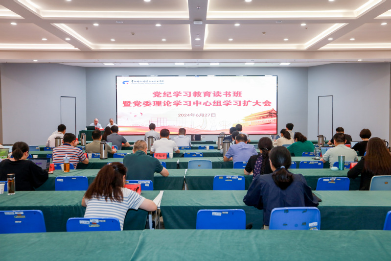 2024年6月27日下午,学校党纪学习教育读书班暨党委理论学习中心组学习扩大会在领秀展厅召开。党委书记吴访升主持会议,校领导、党委委员、纪委委员、党纪学习教育专班成员、全体中层正职干部参加会议。