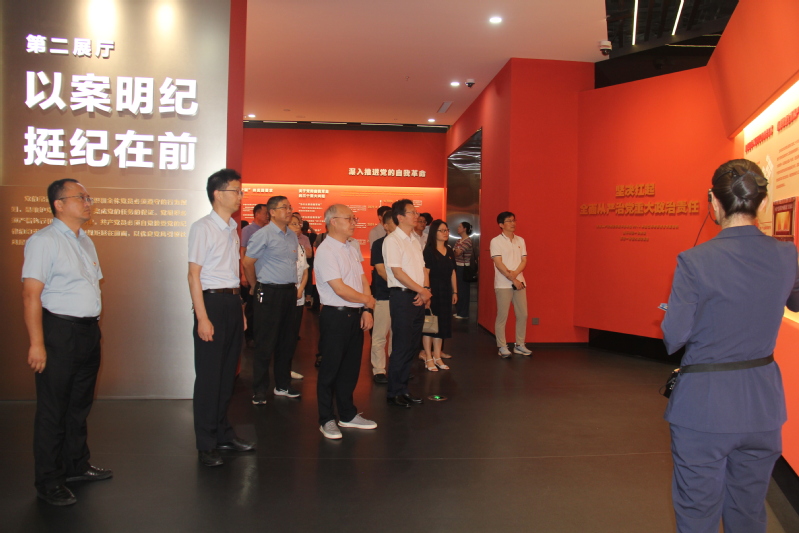 在讲解员引导下,全体同志集中观看了专题片《永远吹冲锋号》,并相继参观了“举旗定向 指路领航”“以案明纪 挺纪在前”“以案促改 系统施治”“以案为鉴 警钟长鸣”等主题展厅,通过实物图文、案例再现、忏悔录等生动鲜活的沉浸式党纪学习教育,深刻领会党的十八大以来以习近平同志为核心的党中央全面推进管党治党的历史性成就以及我省党风廉政建设和反腐败斗争成果。