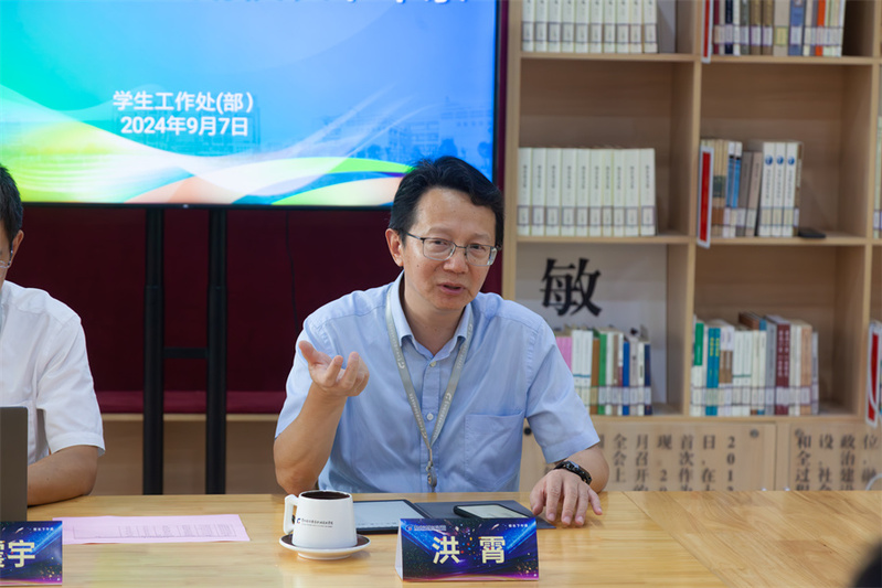 洪霄向2024级新生的到来表示欢迎,对家长们的支持和信任表示感谢,并简要介绍了学校的发展历程、办学宗旨、师资队伍、学生管理、人才培养和建设规划等情况。