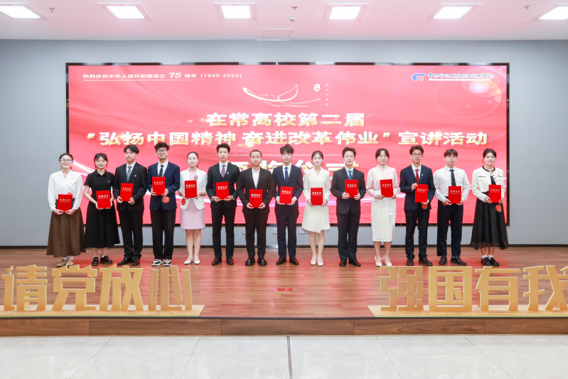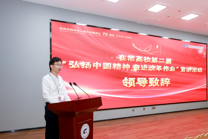 历史川流不息,精神代代相传。为深入学习贯彻党的二十届三中全会精神,庆祝新中国成立75周年,推进“大思政课”建设,发挥高校青年在理论宣讲中的重要作用,10月12日,由中共常州市委宣传部、常州市高校马克思主义理论教育联盟主办,我校承办的在常高校第二届“弘扬中国精神 奋进改革伟业”宣讲活动在领秀展厅隆重举行,主办方、在常各高校领导及师生代表参加宣讲活动,活动全程互联网直播。