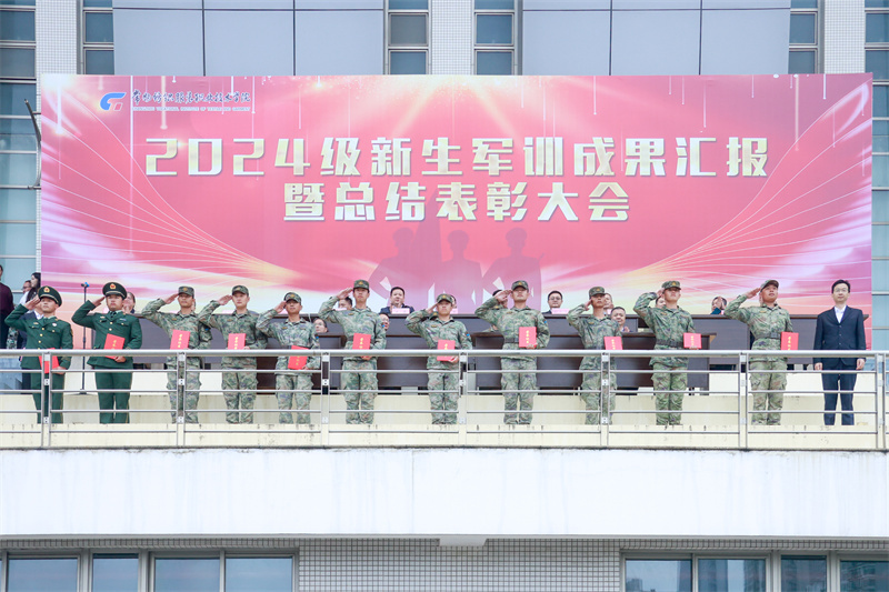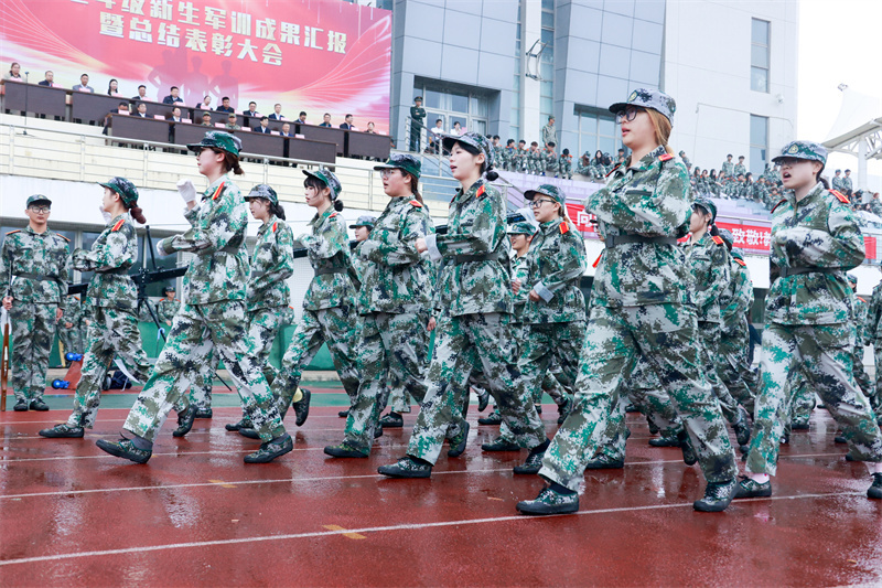 最后,洪霄作总结讲话。他首先对承训部队官兵的辛勤付出表示衷心的感谢,并对全体新生在军训中的优异表现给予了高度评价。他强调,军训不仅是一次身体上的锻炼,更是一次心灵上的洗礼。通过军训,同学们从中学会了自律、坚持和不轻言放弃的品质,这些将伴随他们走过大学三年乃至整个人生旅程。他希望同学们能够将军训中学到的宝贵品质带入到今后的学习和生活中去,带着军训中学到的精神,勇敢地迎接未来的挑战,书写属于自己的精彩篇章。