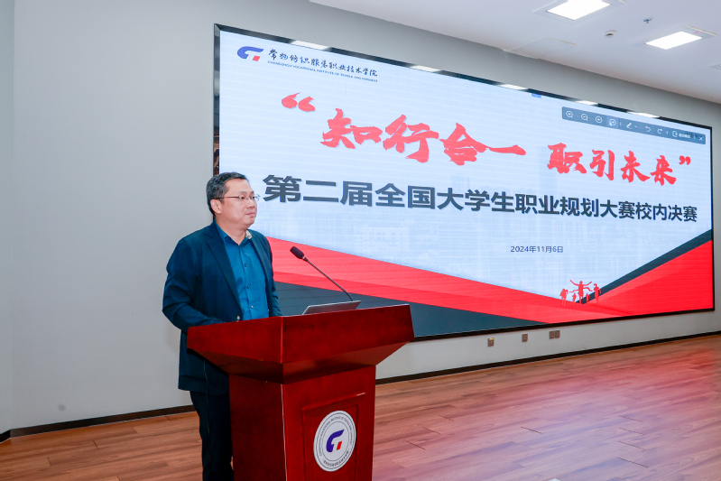 校党委委员、副校长马昀为本次大赛致辞,他指出在当今竞争激烈的社会环境中,拥有明确的职业目标和合理的规划,能够帮助同学们在求职和职业发展中更加从容自信,并希望同学们能够通过此次比赛树立正确的职业观,提高职业规划意识,为未来的职业生涯做好充分准备。