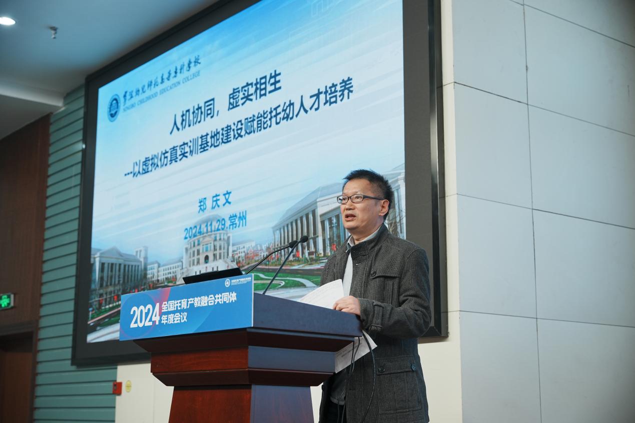 常州纺织服装职业技术学院人文与健康学院党总支书记、代院长董裕乾基于本校托育专业转型和改革发展,分享了题为《融合创新--构建婴幼儿托育服务与管理专业人才培养新模式》的报告。