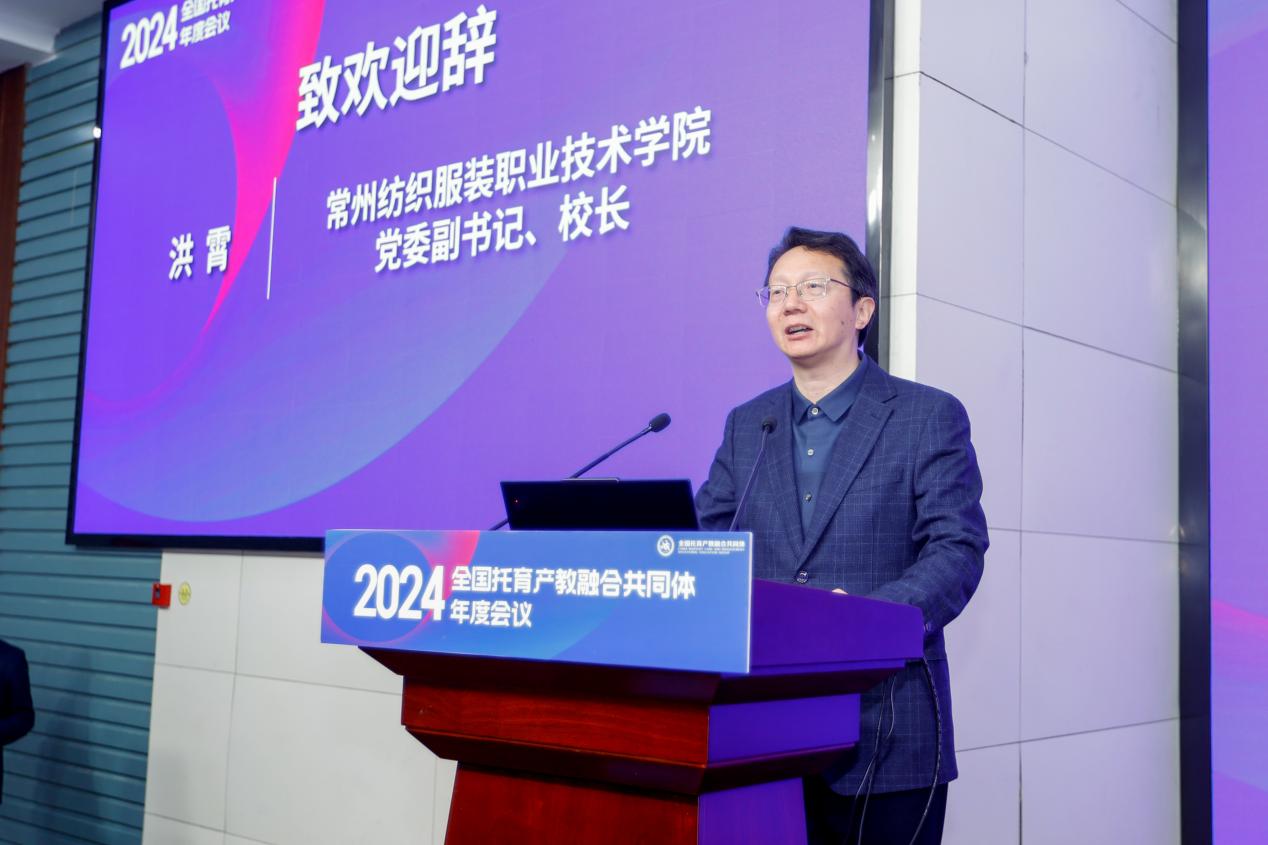 图3 常州纺织服装职业技术学院党委副书记、校长洪霄致欢迎辞