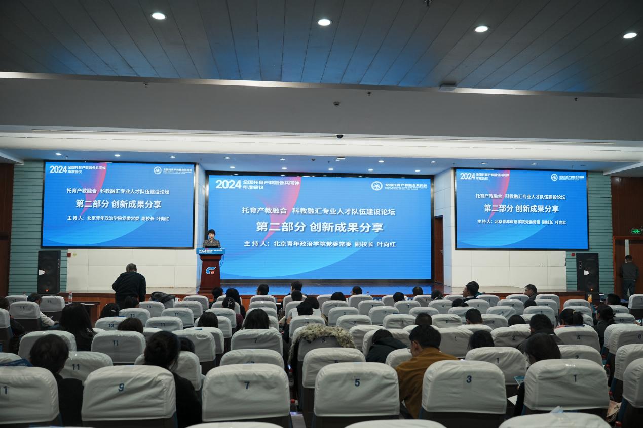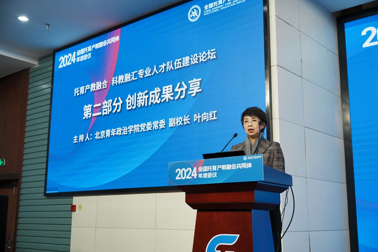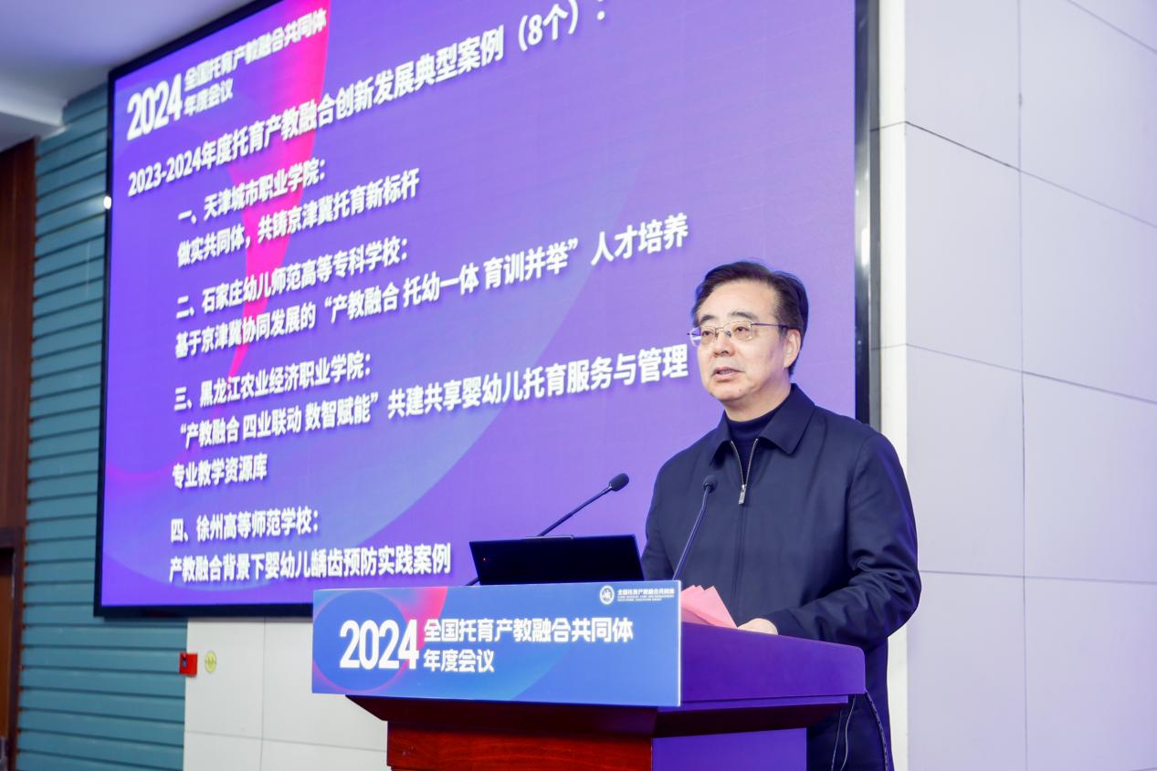 会上,洪霄致欢迎辞。他分享了学院立足自身优势,精准对接托育产业发展需求,积极探索托育人才培养的实践探索和系列成果。随后,他从人才培养、标准制订、“五金”建设及数字化转型等方面汇报了2024年度在推动托育产教融合方面取得的成就。