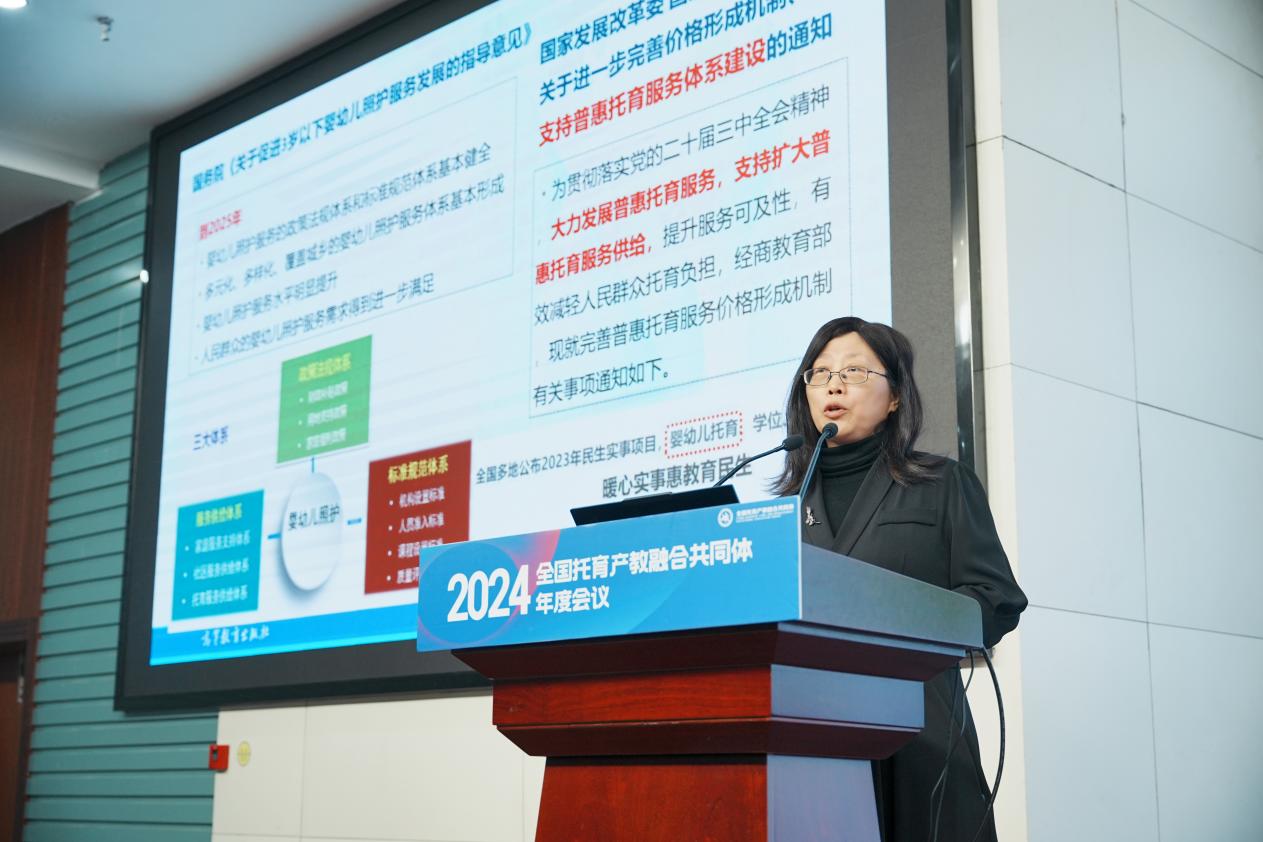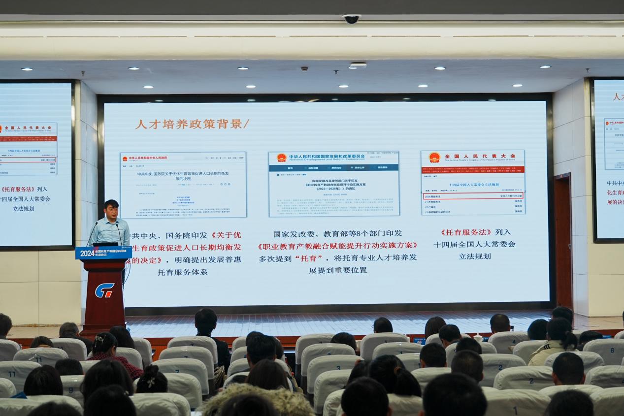 湖北幼儿师范高等专科学校校长秦伟文分享了题为《高质量培育新质托育人才 服务生育友好型社会建设》的报告,展示了学校在现代职业教育体系建设和深化人才培养体系改革方面取得的积极成效。