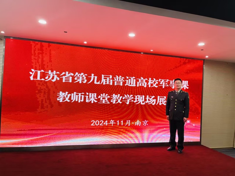 11月28日至12月11日,由江苏省教育厅主办、江苏省普通高等学校军事课教学指导委员会承办的江苏省第九届普通高校军事课教师课堂教学展示决赛在南京举办。我校通识教育学部语文(军事理论)联合教研室选送的人文与健康学院俞旭老师与全省本科院校同台PK,经过决赛的激烈角逐,荣获二等奖。