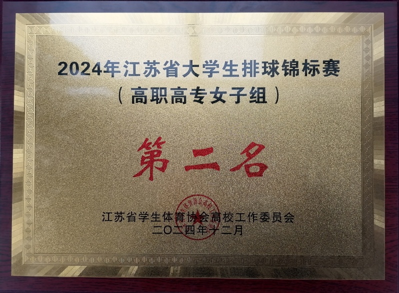 12月6日至11日,2024年江苏省大学生排球锦标赛(高职高专组)在南京信息职业技术学院举行,由体育部承建春、李鸿翔老师指导的我校女子排球队获得第二名。