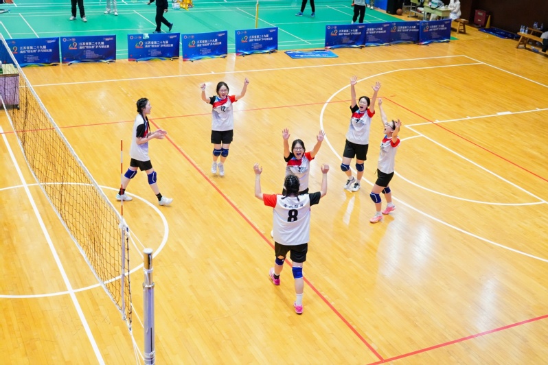 本次比赛由江苏省学生体育协会主办。来自全省高职院校的9支女排球队参赛,小组赛中,我校女子排球队以三个2:0的战绩获得小组第一;半决赛以3:0战胜江苏护理职业学院;决赛中,我校女子排球队以2:3惜败于常州工程女子排球队。