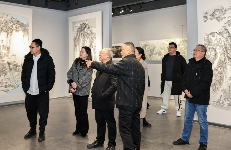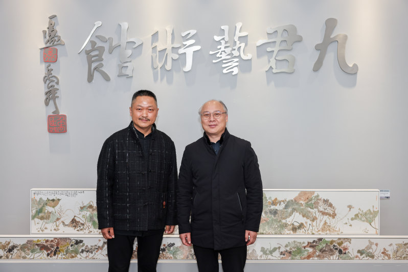 当天下午,吴访升等一行还受邀赴海虞镇九君艺术馆,参加《明远知行——九君写生创作展》。九君,原名孙修君,曾就读于我校服设922班,现为中国美术家协会会员,中国国家画院卢禹舜工作室画家,中国水墨画学会副秘书长,江苏省美术家协会会员,宿迁市第六届政协委员,宿迁市美协中国画艺委会主任,宿迁市民盟楚风画院副院长。作品先后被江苏省美术馆、江苏省现代美术馆,北京曹雪芹纪念馆、常熟市博物馆、刘海粟美术馆收藏。本次展览共展出他近年来前往全国各地写生创作的128幅精品力作,作品以独特视野、浓情笔墨,描绘了根植于大众生活的美好和憧憬。