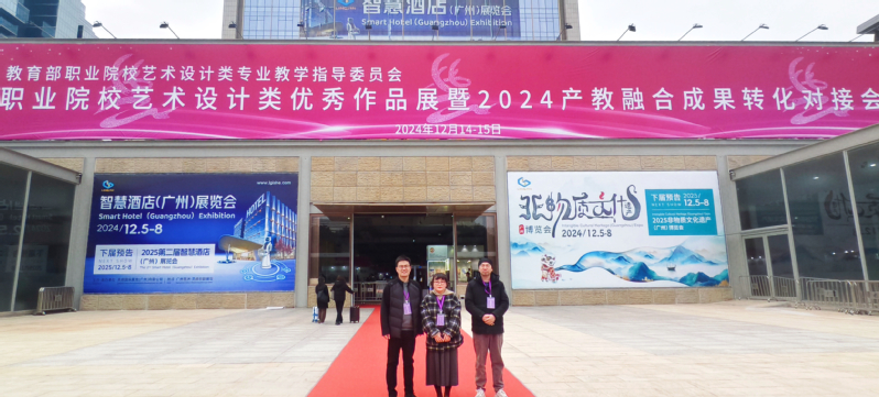 12月12-15日,由教育部职业院校艺术设计类专业教学指导委员会主办的“全国职业院校艺术设计类优秀作品展暨2024年校企融合成果转化对接会”在广州琶洲·灵感创新展馆举行。共有来自全国各地一百多所职业院校及合作企业,近千名教师、企业代表参加了此次展览和成果转化对接会。创意设计学院副院长武传奇带队参加了本次作品展暨成果转化对接会,学院获评“优秀作品展获奖单位”。