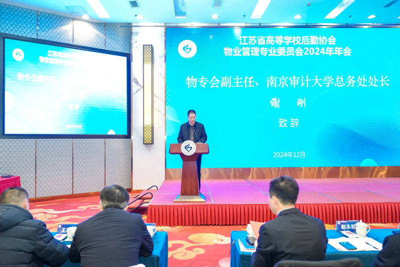“物专会”副主任、南京审计大学总务处处长谢刚代表“物专会”致辞,他回顾了专委会一年来取得的成绩,充分肯定全省各会员高校的所做的各项努力,并号召大家继续提高政治站位,不忘初心使命;搭建好协作平台,促进交流沟通;加强自身建设,提升能力水平。