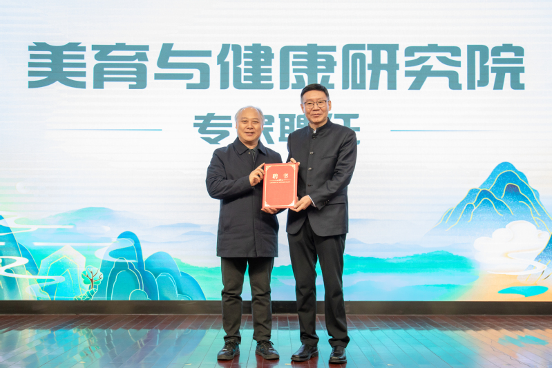 图7:研究员代表熊爽、何卫平接受美育与健康研究院聘书