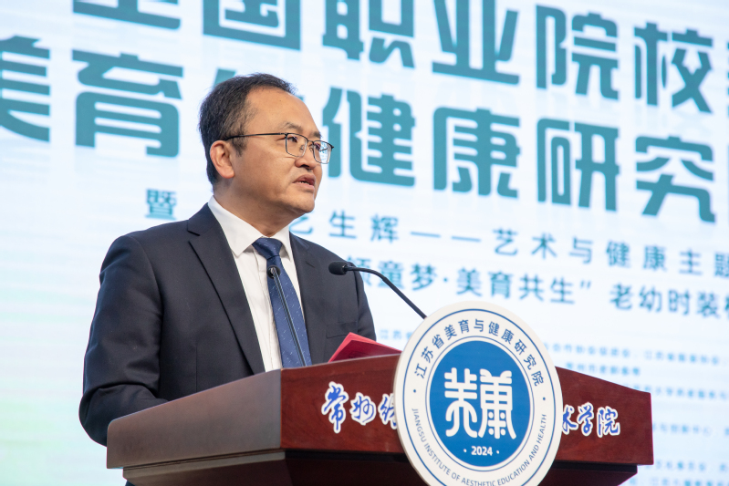 美育与健康研究院揭牌仪式由常州纺院党委委员、副校长马昀主持。常州纺院党委书记、全国美育联盟理事长单位代表吴访升首先致辞,对各位嘉宾的到来表示热烈欢迎和衷心感谢。他指出,本次大会是一次学术、艺术、科技与社会服务的深度融合,也是学校积极响应国家号召、顺应时代发展趋势的重要实践。他表示,常州纺院将全力支持研究院的发展,为推动美育与健康事业以及社会全面进步贡献力量。