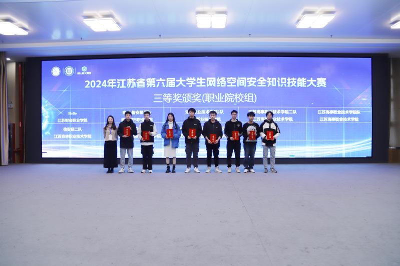 2024年12月28日,2024年江苏省大学生网络空间安全知识技能大赛在江苏安全技术职业学院拉开帷幕,智能制造学院大二学生姚美梦、谢宛苏和金雨、梁星宇组成的两支队伍(指导老师:肖华枫、裴浩)参加了此次比赛。